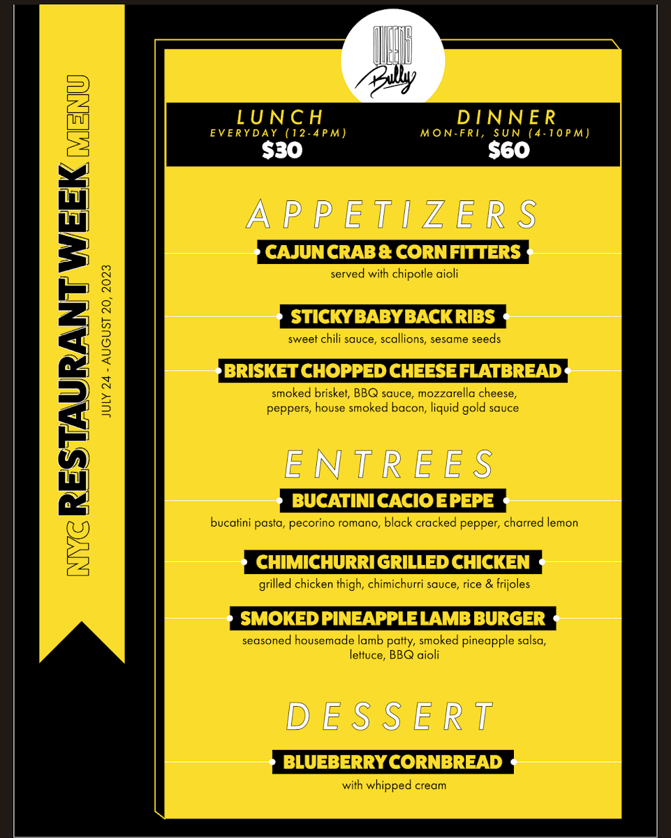 If you're in the Forest Hills area and craving something delicious, look no further than the Queens Bully Menu. Nestled on Queens Blvd, this spot brings you a blend of comfort food with a unique twist. Whether you're in the mood for mouthwatering burgers or flavorful sides, there's something for everyone. Their menu boasts an impressive selection of classic American favorites, all prepared with a special touch. The casual vibe of the restaurant makes it the perfect place to sit back and enjoy a laid-back meal with friends or family. From fresh ingredients to bold flavors, every dish is designed to satisfy and leave you coming back for more. Make sure to stop by and explore all the tasty options waiting for you at Queens Bully.